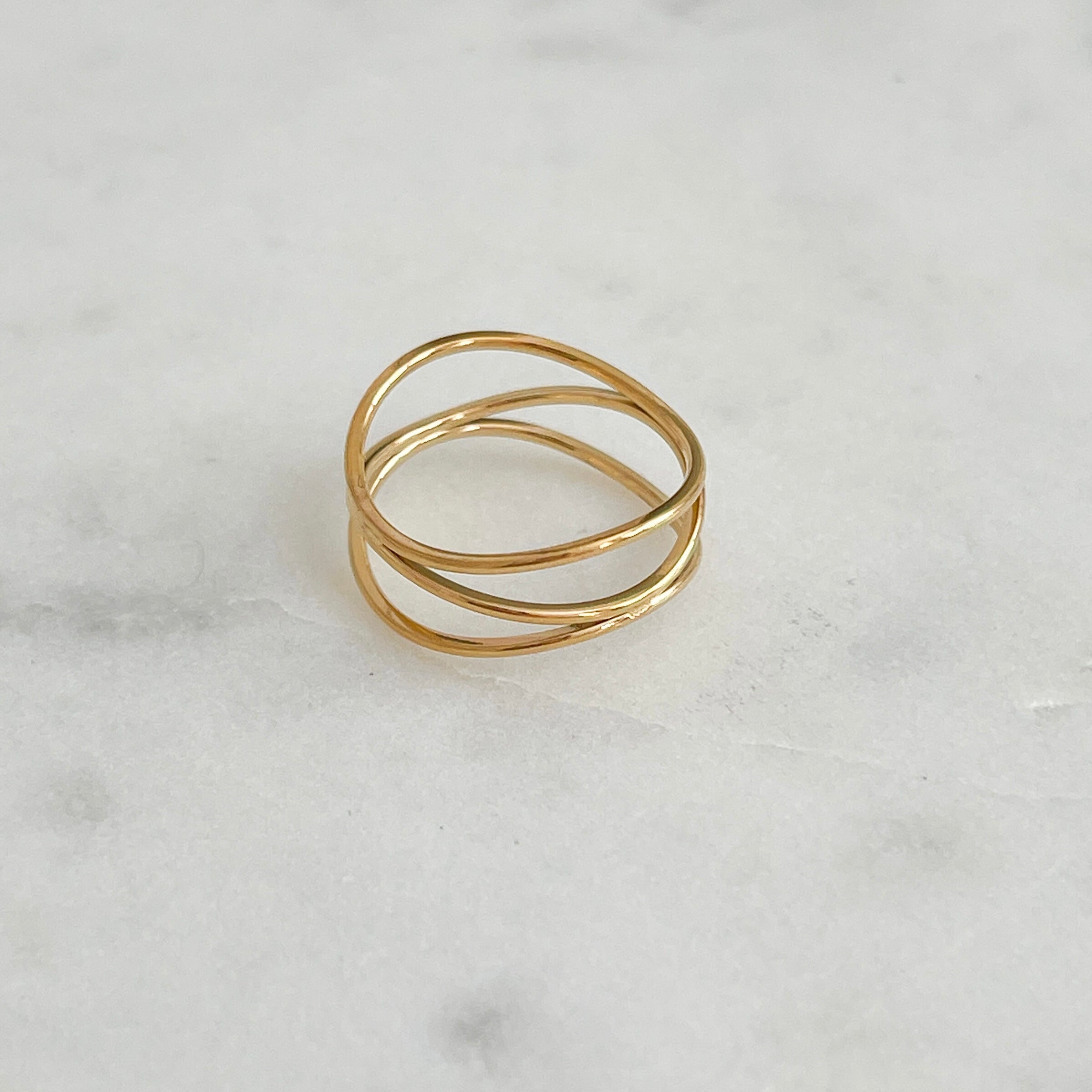 Three in one! Our Mabel Ring is a fine triple style ring made from 18k gold plated stainless steel, so she won’t tarnish or fade even when wet. Perfect layered with other fine rings like our Ophelia Ring