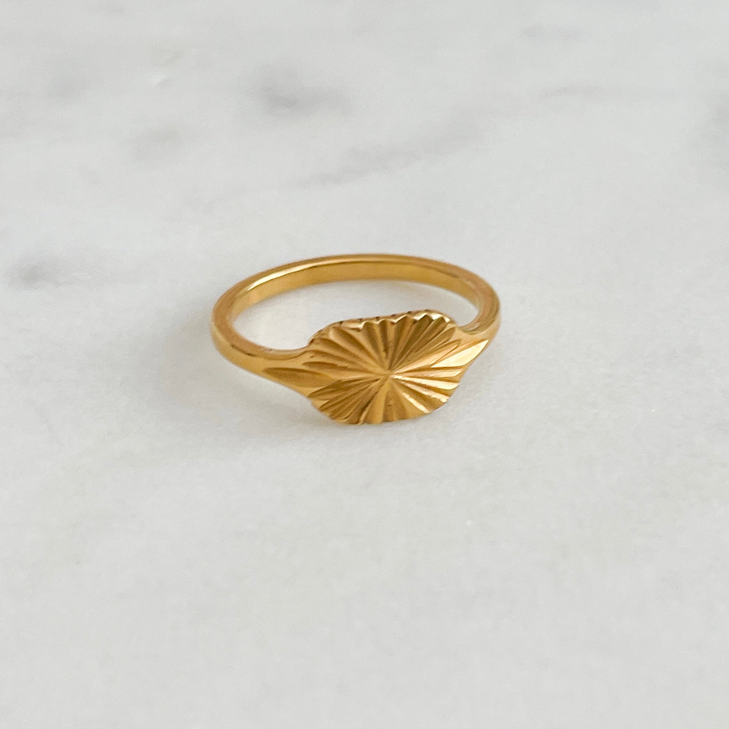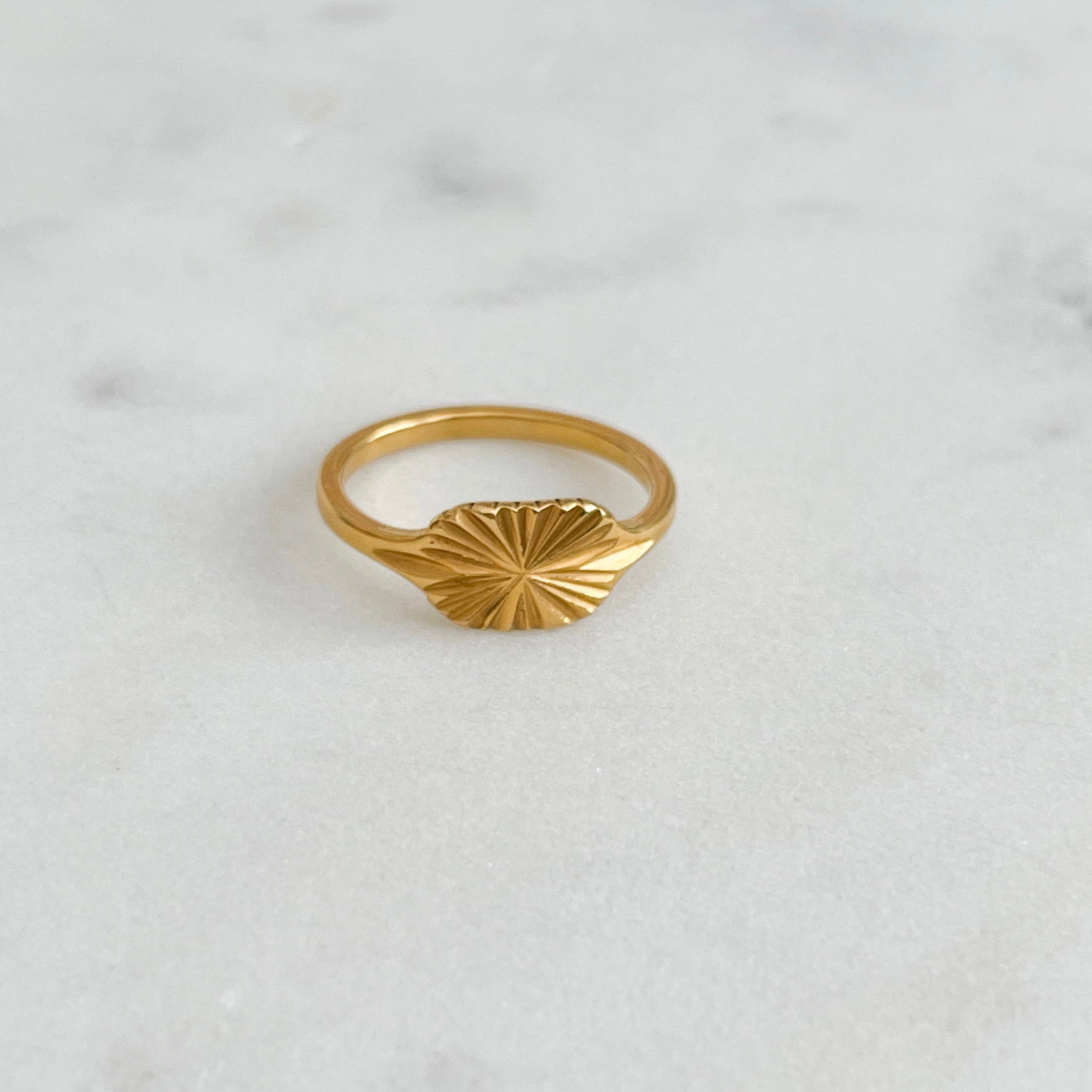 The Angelica Ring is all about effortless statement style. Featuring a rectangle-engraved design on a durable 18k gold-plated stainless steel band, this piece is as strong as it is stylish. Waterproof and tarnish-free, it’s made to be worn anytime, anywhere.