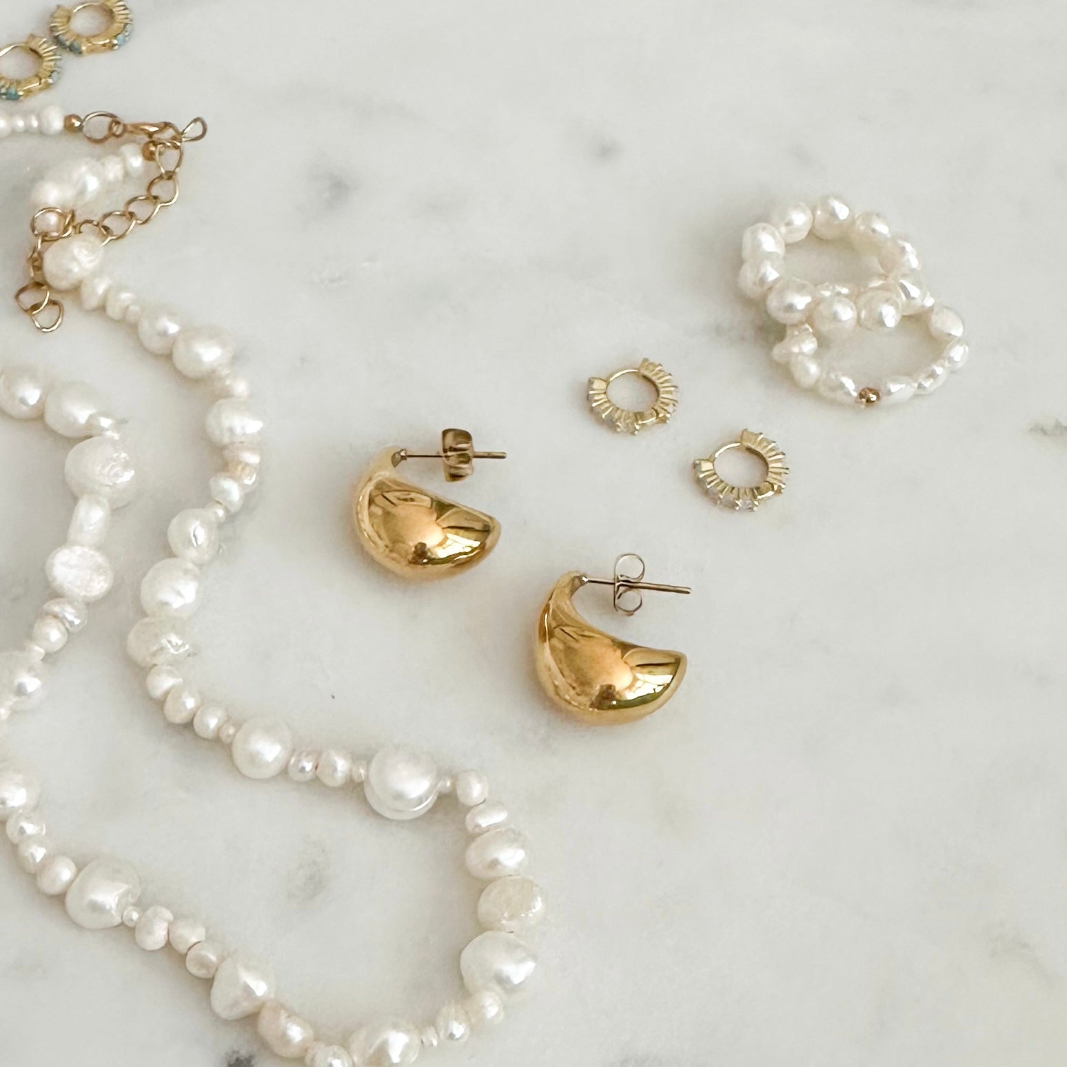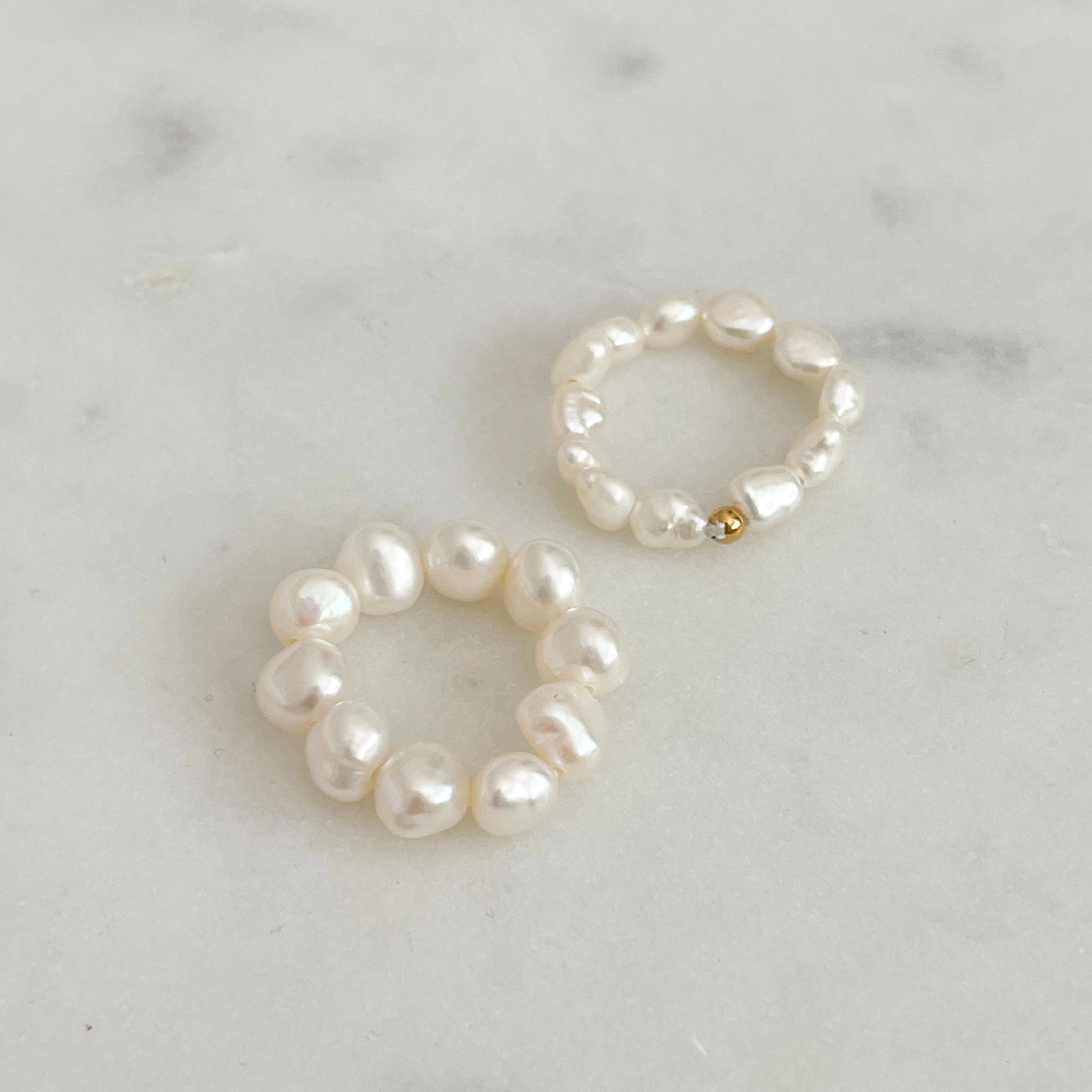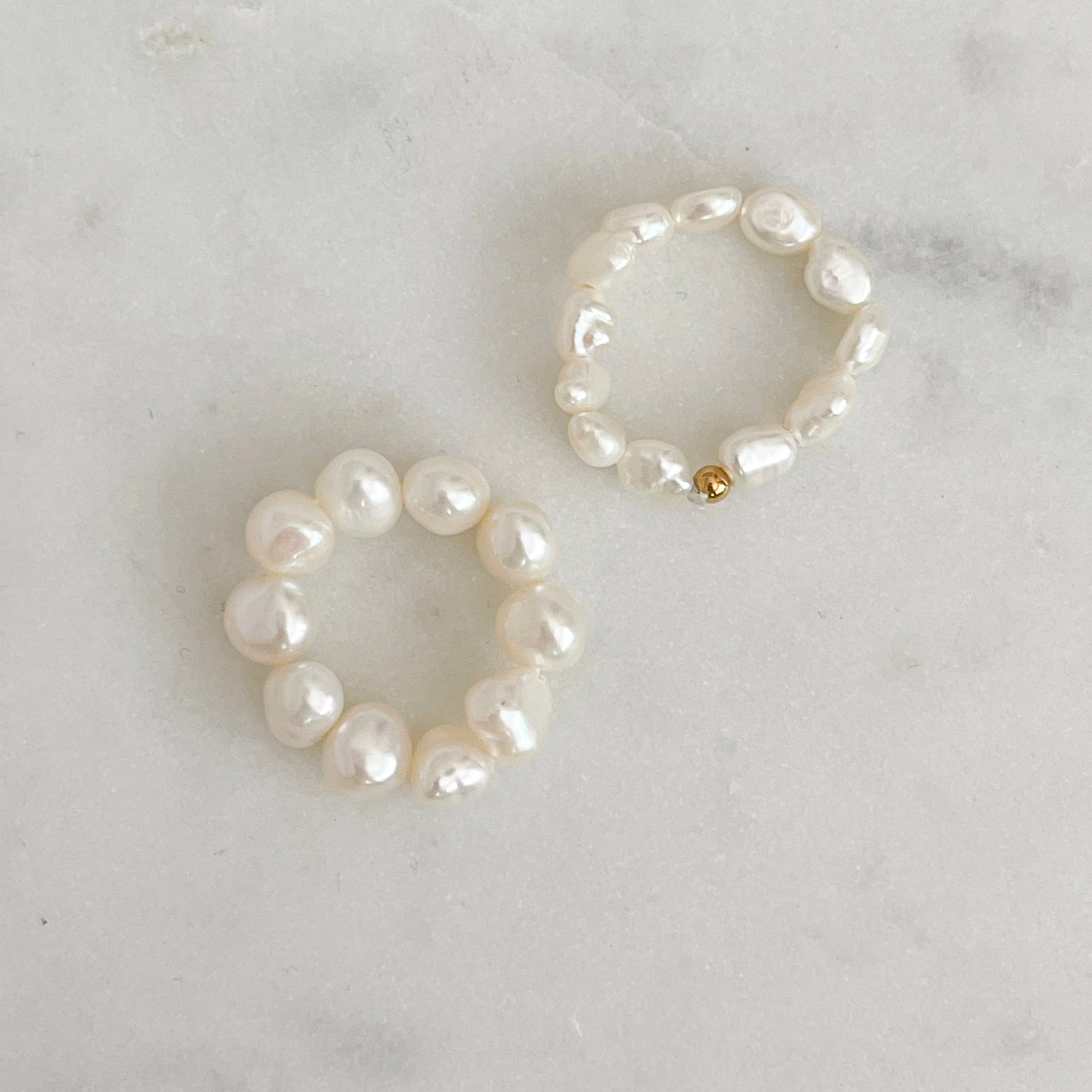 Introducing the latest addition to the Elena collection. These two stretch rings are crafted with strengthened elastic and feature hand-picked freshwater pearls. Choose between a gold bead for a touch of elegance or keep it classic with chunky pearls for a timeless look.