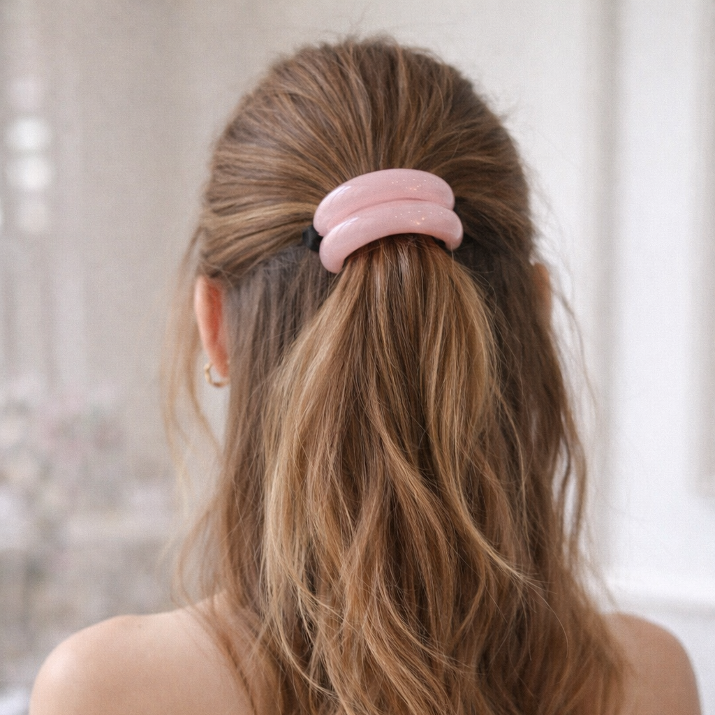 Featuring a smooth, glossy resin finish, this hair accessory adds a modern statement to even the simplest look. Perfect for dressing up casual outfits or adding polish to an evening style, it’s the kind of piece you’ll reach for again and again.